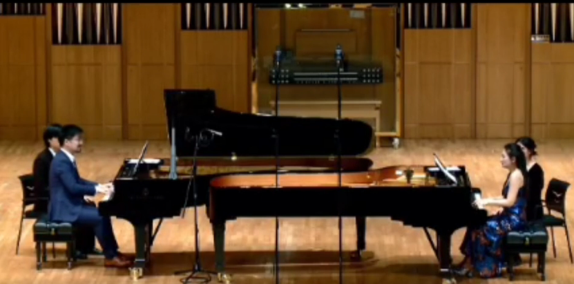 两架发声相同的乐器同台演奏时所表现出的千变万化的音色,不仅超出一架钢琴的表现力,更能很好地体现管弦乐队所具备的丰富音色及演奏形式。因此,这绝不是视觉上所看到的一架钢琴加上另一架钢琴那么简单的事情了,这里面所体现的独立与统一、和谐与对比也正应该是双钢琴演奏的魅力所在吧。